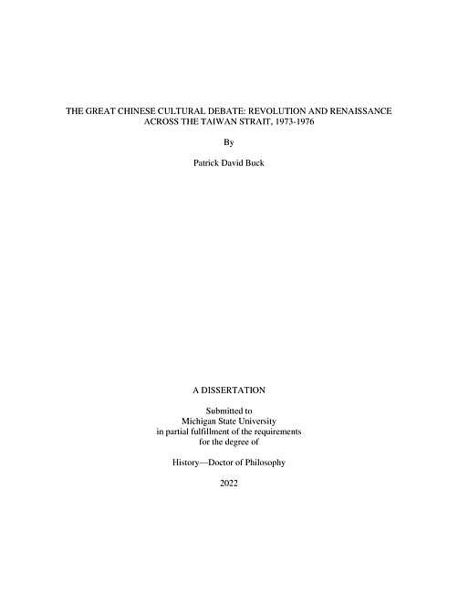 This dissertation is an intellectual history of the Criticize Lin Biao Criticize Confucius Campaign in the People's Republic of China and the Chinese Cultural Renaissance Campaign in the Republic of China (Taiwan), from 1973 to 1976. Utilizing archival sources from mainland China, Hong Kong, and Taiwan, this dissertation is a cross-straits history of the last major campaign of the Great Proletarian Cultural Revolution and of the Mao Zedong era, while also incorporating the broader Sinophone world by introducing the Chinese Cultural Renaissance Campaign at the end of the Chiang Kai-shek era of Taiwan's history.The chapters of this dissertation move from the grassroots upwards, starting in factories, moving up into government office and universities, to secret internal government reports and leading intellectuals. It incorporates declassified high-level governmental reports, local-level government documents, propaganda, popular media, and academic scholarship. Chapter 1 focuses on the political theory small study groups of Shanghai as sites of local knowledge production. Chapter 2 discusses and disentangles complex and seemingly contradictory rhetoric of the effort to criticize Confucianism in 1970s China. Chapter 3 introduces the first English-language history of the Chinese Cultural Renaissance Campaign, as well as how the nationalist Chinese regime in Taiwan discussed and viewed the Cultural Revolution happening in the mainland at that time. Chapter 4 examines the ideas and writings of a leading intellectual figure behind the Cultural Renaissance, Ch'en Li-fu.My dissertation advances understandings in PRC History, Postwar Taiwanese History, the Cultural Revolution, Maoism, Chinese Nationalism, the history of communism, and the role of Confucianism in modern China. By introducing the Taiwanese and Nationalist Chinese reaction, my dissertation further expands on our understandings of the Cultural Revolution as a global phenomenon and major event of the twentieth century through the inclusion of the broader Sinophone world. This dissertation also shows that the two sides of the Taiwan Strait cannot be wholly separated in the history of Cold War-era China, as people on both sides believed themselves to be partaking in the same debate and spoke at each other in the same language.