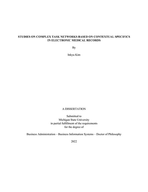 Studies on complex task networks based on contextual specifics in electronic medical records