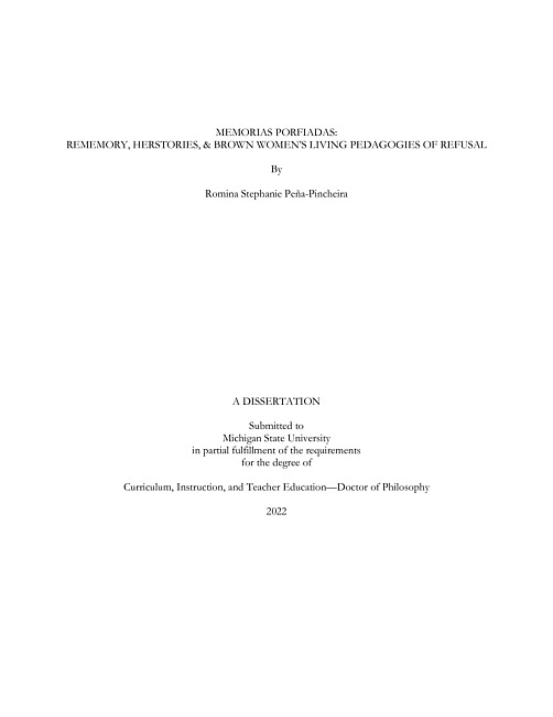 Memorias porfiadas : rememory, herstories, & Brown women's living pedagogies of refusal