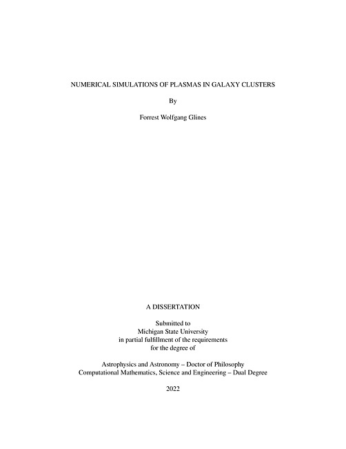 As the largest gravitationally bound objects in the universe, galaxy clusters are a unique probe of large scale cosmological structure. Determining the distribution of galaxy clusters and their virial masses may be key to constraining properties of dark energy and dark matter. Since 84%of a typical galaxy cluster's mass is comprised of non-radiating dark matter, however, determining the virial mass of galaxy clusters depends on inference from the radiating baryonic matter. 84%of this baryonic matter is contained in the intracluster medium (ICM)-a hot, diffuse, magnetized plasma permeating the galaxy cluster. While the baryonic matter is the only emitter of observable electromagnetic emissions from galaxy clusters, the complex behavior of the ICM as a turbulent magnetized plasma makes constraining the virial mass of the cluster with observable signatures difficult. Numerical simulations are essential tools for advancing understanding of the ICM and for tying galaxy cluster observables to virial masses. The goal of this dissertation is to explore and enable simulations of galaxy clusters and magnetized plasmas via a number of different avenues.I first explore self-regulation of feedback from active galactic nuclei (AGN) preventing over-cooling in cool-core (CC) clusters-galaxy clusters with anomalously high central thermal emission which should cool on shorter timescales than they persist. In the idealized galaxy cluster simulations with a thermal abstraction of AGN feedback, we find that the thermal-only heating kernels we test are unable to offset cooling while maintaining a realistic structure, suggesting exploration of more complex AGN feedback mechanisms such as those including magnetic fields and turbulence.We then explore how kinetic and magnetic energy thermalizes in the ICM by studying decaying magnetized turbulence with simulations of the magnetized compressible Taylor-Green vortex. Using a shell-to-shell energy transfer analysis, we find that the magnetic fields facilitate a significant amount of the energy flux that is not seen in hydrodynamic turbulence. Although the full cascade will not be directly captured in ICM simulations for the foreseeable future, higher resolution simulations enabled by larger computational resources can diminish such effects.Different novel many-core architectures have emerged in recent years on the way toward larger supercomputers in the exascale era. Performance portability is required to prevent repeated nontrivial refactoring of a code for different architectures. To address the need for a performance portable magnetohydrodynamics (MHD) code, we combined Athena++, an existing MHD CPU code, with Kokkos, a performance portable framework, into K-Athena to allow efficient simulations on multiple architectures using a single codebase. K-Athena has also inspired the Parthenon performance portable adaptive mesh refinement (AMR) framework. Using this framework, we developed the performance portable AMR MHD code AthenaPK.Galaxy clusters contain significant magnetic fields, although their origin and role is still under investigation. Numerical modeling is essential for the inference of their properties. One aspect is whether magnetic AGN feedback models can self-regulate. I present work-in-progress simulations with AthenaPK of magnetized galaxy clusters slated for exascale supercomputers later this year.With the higher resolutions enabled by exascale systems, galaxy cluster simulations with relativistic jet velocities will be possible. Robust methods for relativistic plasmas will be needed. With this goal, I present a discontinuous-Galerkin (DG) method for relativistic hydrodynamics. We include an exploration of different methods to recover the primitive variables from conserved variables, a new operator for enforcing a physically permissible conserved state, and numerous tests of the method. This method has been used at Sandia National Laboratories to study terrestrial plasmas and will inform relativistic MHD methods for AthenaPK.Finally, I cover the future directions of the work in this dissertation, including the many codes enabled by Parthenon, additions to the magnetized galaxy cluster simulations with AthenaPK, and the large body of projects at Los Alamos National Laboratory to explore binary black hole mergers embedded within AGN accretion disks as a possible formation channel of the massive black holes observed by LIGO. The work in this dissertation to develop performance portable plasma simulations will enable ground-breaking simulations for years to come.