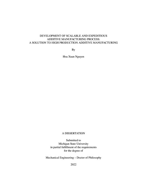 Development of scalable and expeditious additive manufacturing process : a solution to high production additive manufacturing