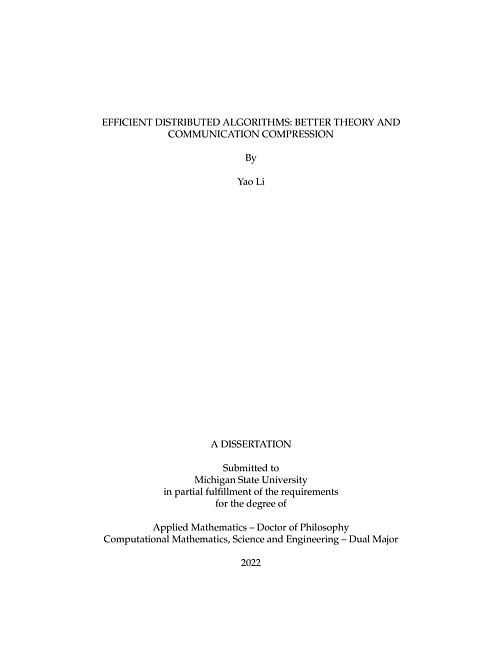 Large-scale machine learning models are often trained by distributed algorithms over either centralized or decentralized networks. The former uses a central server to aggregate the information of local computing agents and broadcast the averaged parameters in a master-slave architecture. The latter considers a connected network formed by all agents. The information can only be exchanged with accessible neighbors with a mixing matrix of communication weights encoding the network's topology. Compared with centralized optimization, decentralization facilitates data privacy and reduces the communication burden of the single central agent due to model synchronization, but the connectivity of the communication network weakens the theoretical convergence complexity of the decentralized algorithms. Therefore, there are still gaps between decentralized and centralized algorithms in terms of convergence conditions and rates. In the first part of this dissertation, we consider two decentralized algorithms: EXTRA and NIDS, which both converge linearly with strongly convex objective functions and answer two questions regarding them. \extit{What are the optimal upper bounds for their stepsizes?} \extit{Do decentralized algorithms require more properties on the functions for linear convergence than centralized ones?} More specifically, we relax the required conditions for linear convergence of both algorithms. For EXTRA, we show that the stepsize is comparable to that of centralized algorithms. For NIDS, the upper bound of the stepsize is shown to be exactly the same as the centralized ones. In addition, we relax the requirement for the objective functions and the mixing matrices. We provide the linear convergence results for both algorithms under the weakest conditions.As the number of computing agents and the dimension of the model increase, the communication cost of parameter synchronization becomes the major obstacle to efficient learning. Communication compression techniques have exhibited great potential as an antidote to accelerate distributed machine learning by mitigating the communication bottleneck. In the rest of the dissertation, we propose compressed residual communication frameworks for both centralized and decentralized optimization and design different algorithms to achieve efficient communication. For centralized optimization, we propose DORE, a modified parallel stochastic gradient descent method with a bidirectional residual compression, to reduce over $95\\%$ of the overall communication. Our theoretical analysis demonstrates that the proposed strategy has superior convergence properties for both strongly convex and nonconvex objective functions. Existing works mainly focus on smooth problems and compressing DGD-type algorithms for decentralized optimization. The class of smooth objective functions and the sublinear convergence rate under relatively strong assumptions limit these algorithms' application and practical performance. Motivated by primal-dual algorithms, we propose Prox-LEAD, a linear convergent decentralized algorithm with compression, to tackle strongly convex problems with a nonsmooth regularizer. Our theory describes the coupled dynamics of the inexact primal and dual update as well as compression error without assuming bounded gradients. The superiority of the proposed algorithm is demonstrated through the comparison with state-of-the-art algorithms in terms of convergence complexities and numerical experiments. Our algorithmic framework also generally enlightens the compressed communication on other primal-dual algorithms by reducing the impact of inexact iterations.