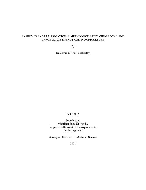 Energy trends in irrigation : a method for estimating local and large-scale energy use in agriculture