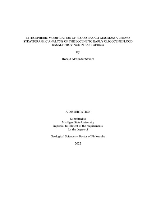 Lithospheric modification of flood basalt magmas : a chemo stratigraphic analysis of the Eocene to early Oligocene flood basalt province in East Africa
