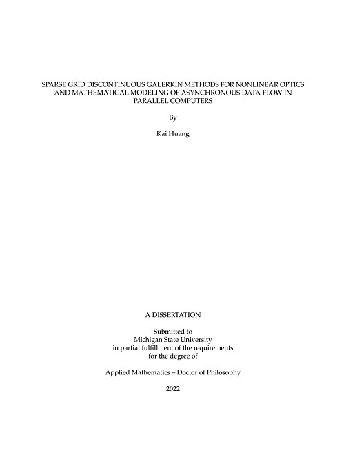 Sparse grid discontinuous Galerkin methods for nonlinear optics and mathematical modeling of asynchronous data flow in parallel computers