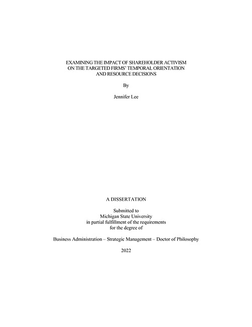 Prior research on shareholder activism has expanded our knowledge on how activism affects firms, especially with respect to the types and magnitudes of activist-impelled changes. However, it remains unanswered how deeply activist intervention morphs the targeted firms and how long such changes persist. Focusing on the firm temporal orientation, I develop theory on how activism influences the targeted firm's time horizon, both when attacked by activists and when activists leave the firm. I open the dissertation by reviewing the rapidly evolving research in shareholder activism. In my first empirical study, I examine how activist intervention shortens the targeted firm's time horizon, and how the degree of shortening is contingent on the relative motivation and capability of activist investors vis-a-vis managers. In the second study, I propose that targeted firms shift their course of strategy once activist investors leave the firm, specifically by increasing their resource-consuming investments. Yet, because of the inherent temporal tradeoff such investments present, I posit that the degree of shift is likely affected by leader attributes and situational factors. Specifically, I argue that the CEOs who are high in their future temporal focus and who have a high level of prospective wealth will increase their resource-consuming investments to a greater degree. In addition to testing hypotheses, the empirical data revealed an unexpected insight into the time horizon changes in non-targeted firms. With my dissertation, I aim to contribute to streams of research on shareholder activism, firm temporal orientation, and corporate governance.