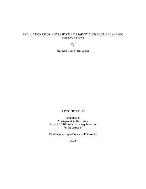 Between 2010 and 2020, many transportation agencies began displaying safety messages and crash facts to the traveling public using roadside dynamic message signs (DMS). The content of these messages varies from annual crash and fatality statistics to more detailed messages regarding specific driving behaviors or risk factors. Despite the widespread use of DMS for safety messaging purposes, evaluations of potential impacts on driver behavior and resultant impacts on traffic safety have been limited. This research addresses this gap through a series of investigations to determine the degree to which the use of DMS for safety messages impacts various aspects of driver behavior. Driver behavior was examined in response to different DMS messages while considering critical contextual factors, such as the type of messages displayed, traffic flow conditions, and roadway geometric characteristics. The first set of field evaluations examined driver behavior as vehicles approached in-service emergency and MDOT service vehicles parked on the roadway shoulder in consideration of the state's move-over law. Compliance was measured in terms of speed reduction and lane selection and comparisons were made based upon a series of targeted messages displayed on upstream DMS. Logistic regression models were estimated to assess driver compliance with the law while considering important contextual factors, such as the type of vehicle on the shoulder and the message displayed on the DMS. The results indicate that drivers were more likely to move over or reduce their speeds when a police car was parked on the shoulder as compared to a transportation agency pickup truck. In general, the type of message displayed had minimal impact on driver behavior. The one exception showed that drivers were less likely to exceed the speed limit when targeted move over messages were shown as compared to standard travel time messages. For all message types, both speed and lane compliance were improved if the roadside vehicle was a police car. The second study examined cell phone use rates in consideration of enforcement activities that were conducted in conjunction with the display of targeted safety messages on roadside DMS. The results showed that cell phone use rates were lower during and, particularly, after the enforcement activities were conducted. Use rates were also found to vary based on age, gender, and race, allowing for the identification of target groups for public awareness and outreach campaigns. Cell phone use rates were also lower at freeway exit ramps compared to signalized and stop-controlled surface street intersections. Furthermore, cell phone-specific safety messages were associated with lower use rates than other message types.Ultimately, the findings largely reinforce federal guidance on the use of DMS for secondary purposes, which include displaying road safety messages. As a stand-alone measure, DMS provide marginal impacts on driver behavior. Such messaging strategies are likely to be more effective when used as a part of active safety campaigns with a limited duration as compared to more frequent and continuous display of generic message types. The outcome of the field investigations also shows that combining targeted messaging with the presence of enforcement results in the most substantive improvements in driver behavior.