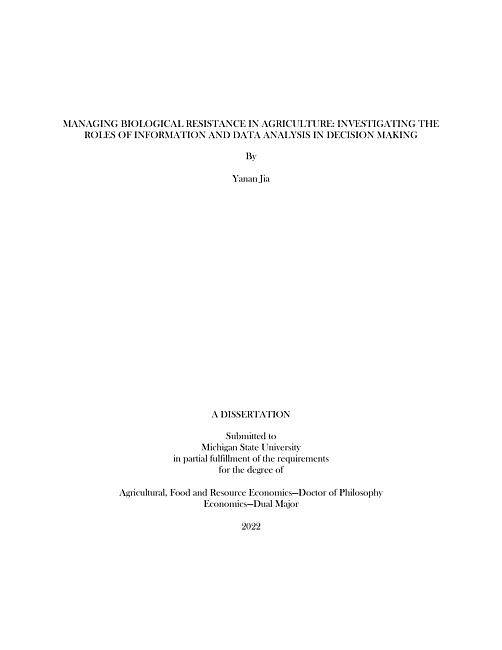 Managing biological resistance in agriculture : investigating the roles of information and data analysis in decision making