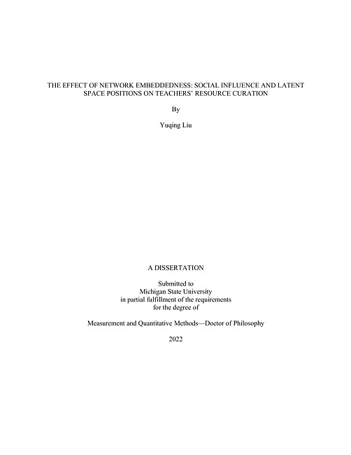 The effect of network embeddedness : social influence and latent space positions on teachers' resource curation