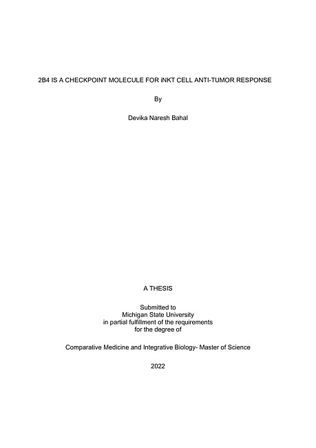 2B4 is a checkpoint molecule for inkt cell anti-tumor response
