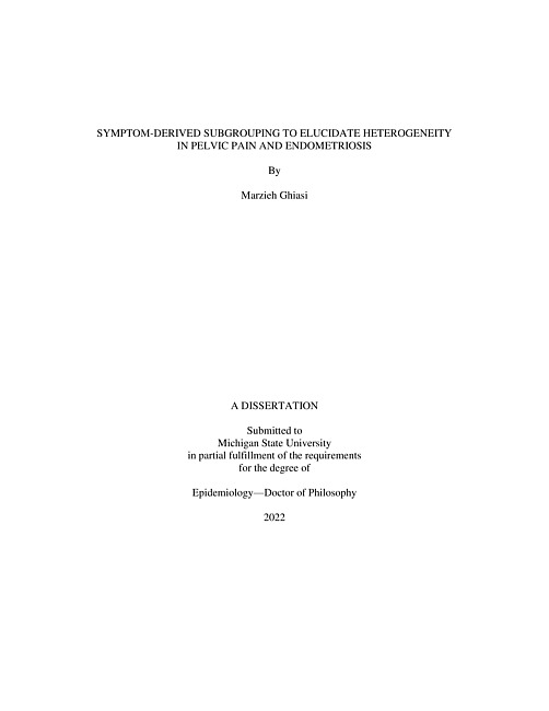 Cyclic and non-menstrual pain in the pelvis and lower abdomen is associated with significant morbidity among women worldwide. The heterogeneity observed in the clinical presentation of pelvic pain and its associated disorders is not well understood. Endometriosis is among the most common disorders diagnosed in those presenting with pelvic pain. At the population level, there is great uncertainty regarding the true prevalence and incidence of endometriosis. At the individual level, pelvic endometriosis staging based on lesion type, location, or volume does not correlate well with pelvic pain symptoms. The overarching purpose of this dissertation was to describe and delineate the ways in which populations with pelvic pain - with and without endometriosis can be meaningfully partitioned.The first aim was to characterize the population-level heterogeneity in the global distribution of endometriosis. We summarized and critically assessed studies of endometriosis frequency, distribution, and stage estimates between 1989-2019. We identified 69 studies describing the prevalence and/or incidence of endometriosis and examined stratification by population type and by indication for diagnosis, finding endometriosis prevalence ranging from 15.4% to 71.4% among women presenting with chronic pelvic pain. We did not find a change in frequency or distribution of endometriosis across the 30-year period.The second aim was to identify subgroups of pelvic pain symptoms based on clustering patterns and investigate their association with comorbidities related to inflammation and chronic pain. Cross-sectional baseline data were analyzed from 1255 participants in the Women's Health Study: from Adolescence to Adulthood (A2A) cohort, an ongoing longitudinal cohort study oversampled for adolescents and individuals with surgically confirmed endometriosis. We derived subgroups using latent class analysis (LCA) consisting of six variables: menstruation associated (cyclic; dysmenorrhea) and non-menstruation associated (acyclic) pelvic pain severity, frequency, and impact on daily activities. We identified five subgroups defined by pelvic pain characteristics and found distinct associations of comorbidity patterns, including endometriosis, differentially associated with these subgroups.The third aim was to, again, utilize these identified five subgroups defined by pelvic pain characteristics and investigate their association with seven plasma-based inflammatory biomarkers selected for their previously observed associations with pelvic pain. We performed a three-step approach to examine these associations, accounting for non-linearity and classification uncertainty in the relationship between biomarkers and subgroup assignment, as well as adjusting for confounding by age and body mass index. We found that the most significant associations of pro-inflammatory cytokines were with the subgroup defined by those reporting both severe cyclic and severe acyclic pelvic pain compared to the subgroup inclusive of those reporting no pelvic pain. This severe multifactorial pelvic pain subgroup was the same group found in our second aim to be associated with the highest number of inflammatory and pain comorbidities.Overall, this work contributes to understanding of the heterogeneity and patterning of symptomology in pelvic pain, with a lens on endometriosis. Considering the strengths and limitations of each study, subgroup associations with comorbid inflammatory and pain conditions and inflammatory biomarkers may suggest both distinct biologic pathways and shared underlying etiologies that warrant investigation in future research.