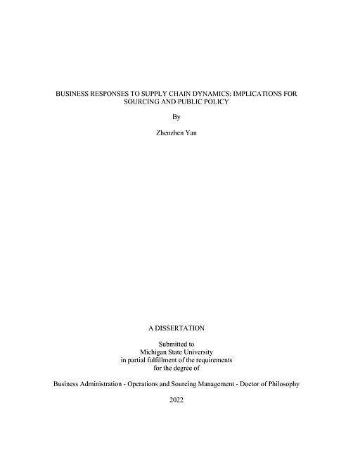 This dissertation studies drivers and consequences of firms' policy decisions from a supply chain perspective. Policy decisions can be both internal and external to the firms and carry substantial implications for firms' performance outcomes. Both internal and external aspects of policy engagement are critical since they help further disciplinary understanding of not only how policy decisions influence the performance of products firms manufacture, but also the fact that firms can reshape their environmental conditions through adopting policy decisions to engage with regulators and impact their own business practices. Specifically, I investigate firms' sourcing policies and their product performance implications - an internal policy set by firms. Within the context of external policy engagement, my research investigates firms' policy responses to external conditions, such as climate change public policies.The first essay focuses on manufacturing localization, an internal policy set by automakers to relocate manufacturing activities closer to their target market. I apply a causal estimation method to 23-year panel data of the automotive industry complied from diverse data sources including Wards, National Highway and Traffic Safety Authority (NHTSA) recall data to investigate the quality implications of manufacturing localization. The results show an immediate quality decline for localized vehicles, indicated by an increase of 68.203% in the number of recalls (equivalent to 0.552 more recall campaigns) and an increase of customer complaints by 56.831% (equivalent to 9.997 more complaints) in the three years after the manufacturing localization. The increased number of recalls can lead to an extra expense of $2.76 million for a localized vehicle based on conservative estimations. A cautionary note is thus issued for automakers to adjust their planned budgets to account for warranty claims before the localization. This study provides guidance for firms considering the relocation of their manufacturing activities and for regulators that seek to reduce vehicle recalls.The second and third essays of my dissertation investigate firms' engagement in influencing climate change policies (EICCP), which refers to firms' strategic actions to influence climate change policymaking processes, aiming at reshaping policies or promoting policy changes in favor of their interests. In the second essay, I conceptualize EICCP and propose a taxonomy for EICCP strategies considering firms' perceptions of external conditions and internal resources. I also create measures for EICCP to empirically validate this taxonomy by performing text analytics with machine-learning techniques on firms' self-disclosure in CDP Climate Change data. Building on the second essay, I undertake a large-scale empirical analysis to investigate antecedents of EICCP in the third essay. Specifically, I examine the regulatory risks associated with climate change and firms' supply network complexity as critical and interrelated factors for firms' EICCP. The latter two essays contribute to the growing literature on climate change and firm responses. Overall, my thesis responds to the call for policy-related studies in the supply chain field and provides insights for policy decision-makers.