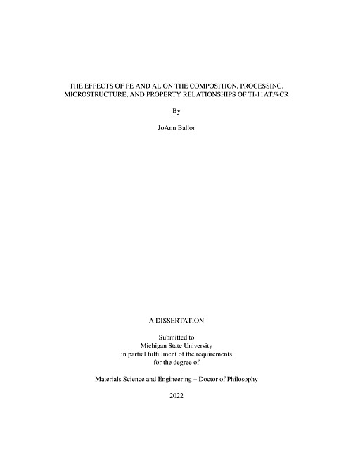 The effects of Fe and Al on the composition, processing, microstructure, and property relationships of ti-11at.%cr