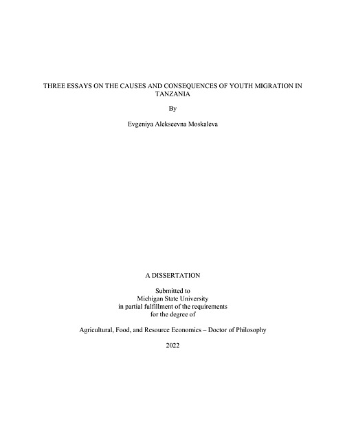 Migration of youth is a prominent phenomenon in Sub-Saharan Africa and in East Africa in particular. International and rural-to-urban migration gained a lot of attention in the older literature, yet internal rural-to-rural migration is the most frequent type. This work revolves around several issues of internal migration of youth in rural Tanzania. First, I determine which factors are associated with destination decisions made by young people. I look at four to six destination types on the rural-urban spectrum and consider various individual, household, and community factors that could affect migration decision. Second, I test how does migration to various destination areas on the rural-urban spectrum contribute to structural transformation through the shifts in main occupation. Although focusing on the shifts from agricultural work to self-employment and wage job, I also consider other employment categories like students, those working mainly in household maintenance, and unemployed people. Third, I estimate the impacts of youth outmigration on the livelihood of non-migrant household members. I consider changes to the labor supplied to the household farm, attraction of new household members, and adjustments to household participation in labor and land markets. I make contribution to the literature on internal migration of youth in Sub-Saharan Africa, and Tanzania in particular, in four ways. First, I distinguish several migration destinations across the rural-urban spectrum, from low-density rural areas to cities, broadening the conceptualization of migration decision instead of focusing on a specific flow of migrants. I test three categorizations of location types to account for different interpretations of results and to verify that the main results are not an artifact of the choice of the definition of "rural". Second, I stress the importance of rural-to-rural migration, which is prevalent in Tanzania, although understudied. I show that even migration to low-density rural areas is associated with a shift towards non-agricultural employment. Third, while looking at occupational shifts, I consider people who are usually excluded from the analysis: students and those employed in household maintenance. I also look at women who state marriage as their main reason for migration. It allows to broaden the view on migration flows and discover employment difficulties for certain groups of people, for example, female rural-to-rural migrants involved mainly in household maintenance and students transitioning into employment. Fourth, I explore the labor adjustment strategies of the households left behind after a young adult migrates, which has rarely been studied in the context of the countries of Sub-Saharan Africa.