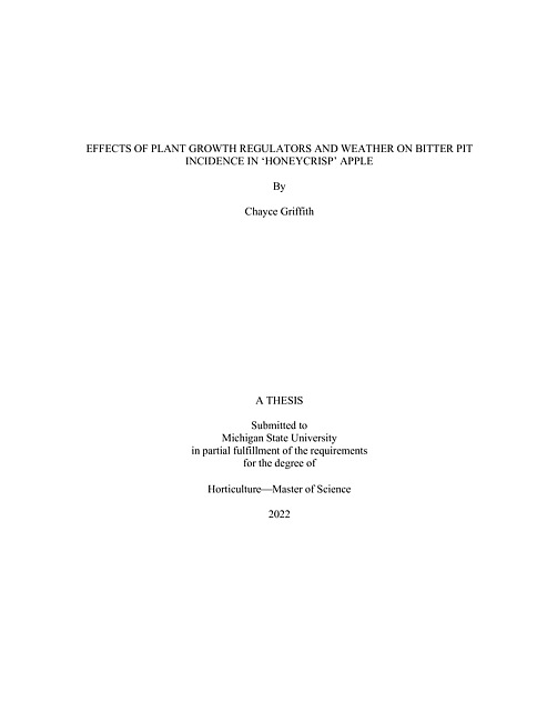 Effects of plant growth regulators and weather on bitter pit incidence in "honeycrisp" apple
