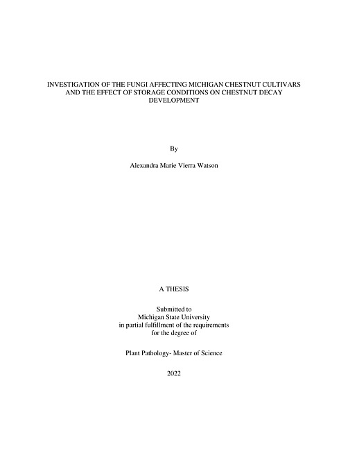 Investigation of the fungi affecting Michigan chestnut cultivars and the effect of storage conditions on chestnut decay development