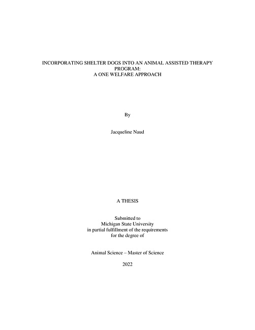 Incorporating shelter dogs into an animal assisted therapy program : a one welfare approach