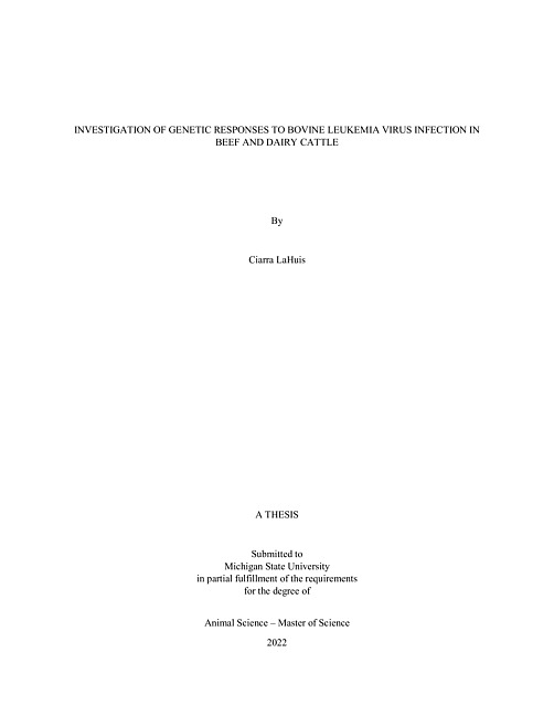 The USDA estimated 78% of US beef operations and 89% of US dairy operations are seropositive for Bovine Leukemia Virus (BLV). Cattle infected with BLV may suffer reduced immune function and productivity. Animals with advanced BLV infections may develop lymphoma, leading to carcass condemnation at slaughter. Research has revealed growing evidence of host genetic markers associated with BLV infection. While research on BLV in beef cattle is limited, BLV research in dairy cattle is plentiful. In dairy cattle, evidence of an association between the Bovine Leukocyte Antigen (BoLA)-DRB3 gene locus and proviral load (PVL) has been reported. However, these associations have not been explored in beef cattle. Chapter 1 investigates associations between BoLA-DRB3 alleles and BLV PVL in upper Midwest beef cattle populations (n=157). Associations between BLV PVL and BoLA-DRB3 alleles was determined. Alleles DRB3*033:01 and DRB3*002:01 were found to be associated with lower PVL and DRB3*026:01 with higher PVL. Chapter 2 explores epigenetic relationships between dam and her calf. Epigenetics can be studied through microRNAs (miRNA), a small noncoding RNA species involved in post-transcriptional gene regulation. Variations in maternal environment have long been associated with fetal development and health. The study will measure differential expression of circulating miRNAs in calves born to BLV infected dams (n=24). The study found four miRNAs in 14-day old calves born to BLV infected dams. Literature indicates the miRNAs are associated with immunological response, skeletal muscle development, and cardiac development. The presented thesis provides some of the first insights of allelic and epigenetic regulations associated with BLV infections in cattle.
