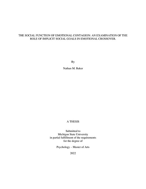 The social function of emotional contagion : an examination of the role of implicit social goals in emotional crossover
