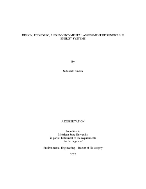 Design, economic, and environmental assessment of renewable energy systems