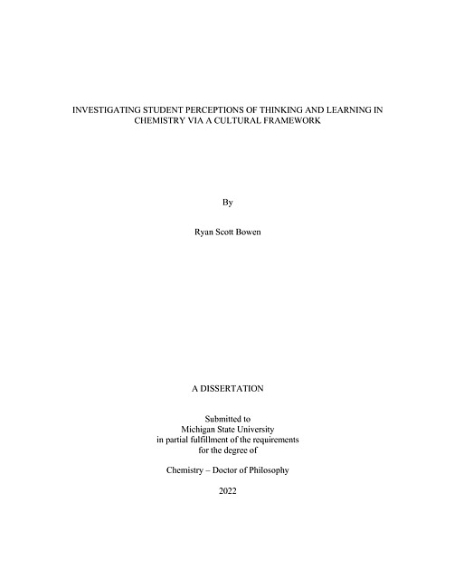 Investigating student perceptions of thinking and learning in chemistry via a cultural framework
