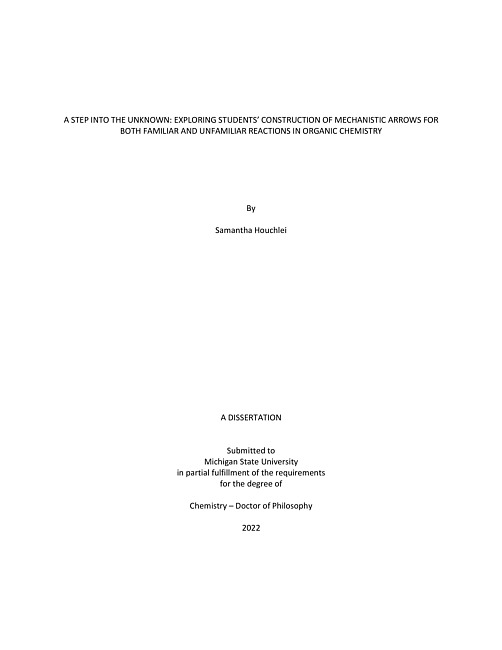 A step into the unknown : exploring students' construction of mechanistic arrows for both familiar and unfamiliar reactions in organic chemistry