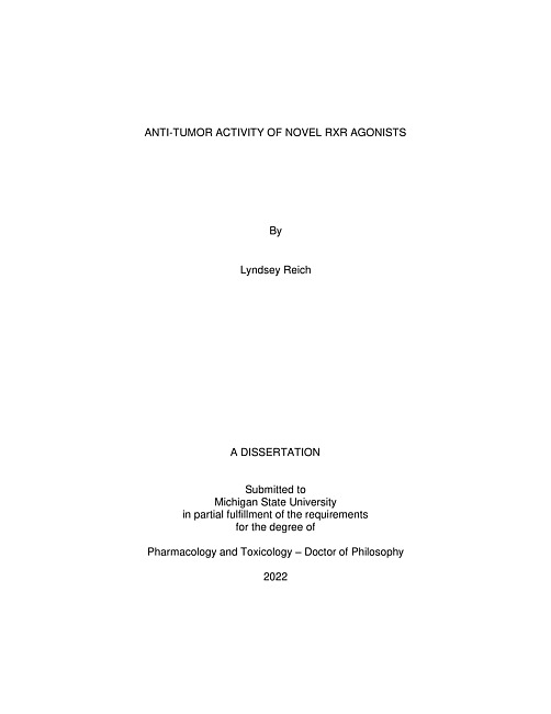Retinoid X receptor (RXR) agonists bind to and activate the nuclear receptor RXR, thereby regulating gene transcription relevant to cellular proliferation, apoptosis, cell cycle, immunity, and numerous other biological processes. RXR agonists have been explored as treatments for cancer, metabolic disorders, and neurodegenerative diseases, and one RXR agonist, bexarotene, has been FDA approved for the treatment of cutaneous T cell lymphoma (CTCL). Bexarotene has also been tested in clinical trials for lung and metastatic breast cancer, wherein subsets of patients responded despite advanced disease. By modifying structures of known rexinoids, we can improve potency and toxicity. We have previously developed an in vitro screening paradigm that predicts activity in vivo and tested a series of novel rexinoids using this system of assays. This thesis project tested newly synthesized RXR agonists in preclinical mouse models of breast and lung cancer, diseases that cause significant morbidity and economic burden in the United States and worldwide. These novel compounds, V-125 and MSU 42011, are efficacious and well tolerated in the MMTV-Neu model of HER2+ breast cancer and the A/J model of non-small cell lung cancer. To generate mechanistic hypotheses for the anti-tumor efficacy of these novel compounds, RNA sequencing data from treated MMTV-Neu tumors is contained herein. Enrichment analyses of several RXR agonists depicts unique gene expression profiles, with unifying themes of immunomodulatory activity and modification of adhesion molecules and extracellular matrix components. This data and validation data provided direction for future mechanistic studies on the biological, immune modulatory, and anti-tumor effects of these compounds. By studying the mechanisms of these compounds, we may gain insight into how best to design future RXR agonists and how to utilize these compounds in human disease.