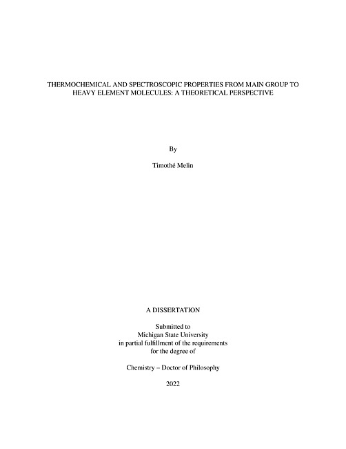 Thermochemical and spectroscopic properties from main group to heavy element molecules : a theoretical perspective