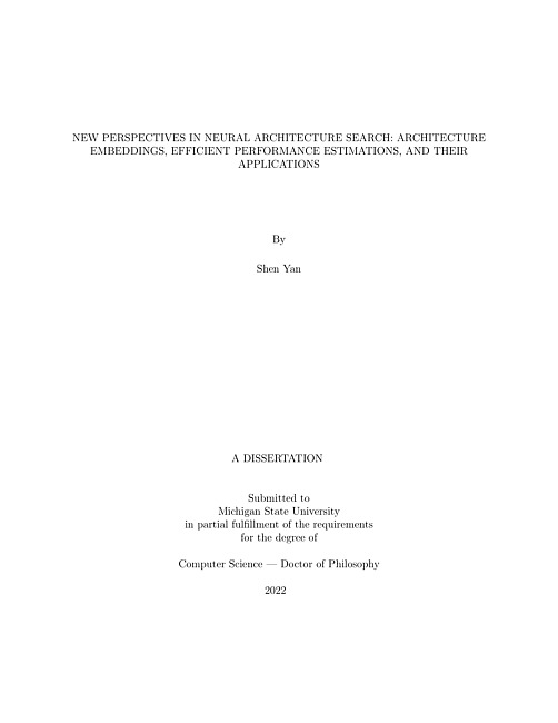 New perspectives in neural architecture search : architecture embeddings, efficient performance estimations, and their applications