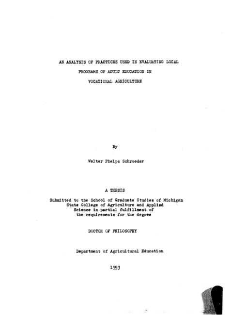 An analysis of practices used in evaluating local programs of adult education in vocational agriculture