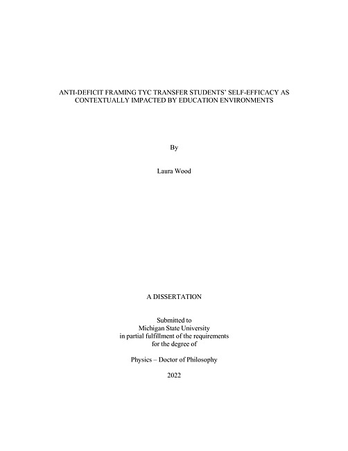 Anti-deficit framing TYC transfer students' self-efficacy as contextually impacted by education environments