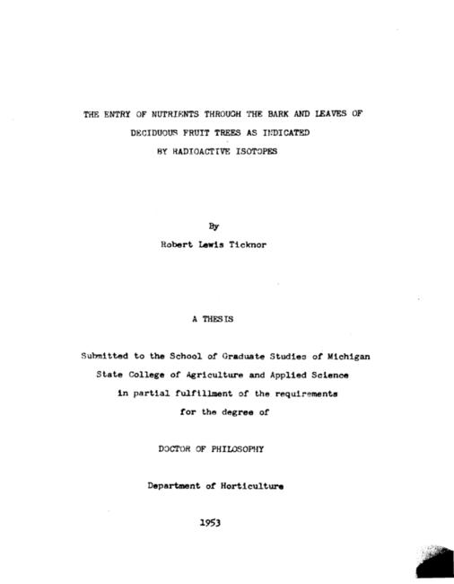 The entry of nutrients through the bark and leaves of deciduous fruit trees as indicated by radioactive isotopes