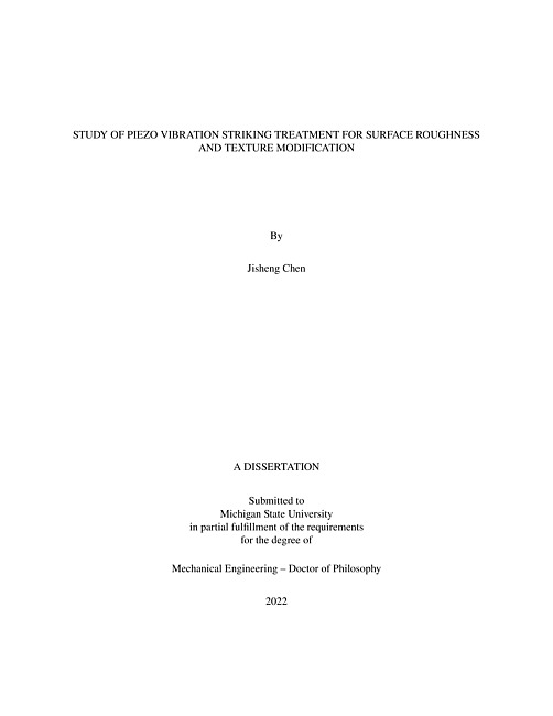 Study of piezo vibration striking treatment for surface roughness and texture modification
