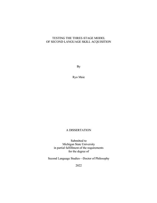 Skill acquisition theorists conceptualize second language (L2) learning as the acquisition of a set of perceptual, cognitive, and motor skills. The dominant view in skill acquisition theory is to regard L2 skill acquisition as a three-stage process "from initial representation of knowledge through initial changes in behavior to eventual fluent, spontaneous, largely effortless, and highly skilled behavior" (DeKeyser, 2020, p. 83). While there is indirect evidence that indicates the existence of such developmental stages, the number and the nature of those stages are often assumed a priori, and whether or not these stages actually exist remains untested. My dissertation study was designed to test and validate the three-stage model of L2 skill acquisition derived from cognitive psychological research, namely, the cognitive, associative, and autonomous stage (Fitts & Posner, 1967), each of which draws on distinct cognitive processes for learning.Sixty-five adult learners deliberately learned and practiced a miniature language based on Japanese, called Mini-Nihongo, for a total of 1,056 practice trials. The participants also took a battery of tests on three dimensions of cognitive abilities that are known to be active at each stage of skill acquisition: declarative memory, procedural memory, and psychomotor ability (Ackerman, 1988, 1992; Anderson, 1982). Comprehension practice took place in the form of a sentence-picture matching task, and production practice was implemented in the form a productive maze task. Accuracy, reaction time (RT), and the coefficient of variability (CV) of RT were analyzed as the dependent variables. There were six tests of cognitive abilities: the Continuous Visual Memory Task and LLAMA-B for declarative memory ability, an alternating serial reaction time task and a statistical learning task for procedural memory ability, and the alternating serial reaction time task and a two-choice RT task for psychomotor ability.I analyzed the data from the language practice and the battery of cognitive tests in two steps. First, I fitted a series of hidden Markov models (HMMs) to the RT data that represented different hypotheses regarding the number of skill acquisition stages (i.e., one, two, or three stages). This first step of the analysis revealed that the acquisition of comprehension skills can be best conceptualized as a three-stage process, whereas the acquisition of production skills encompassed two stages.Based on the best-fitting HMMs and the corresponding number of learning stages, I then utilized a series of generalized linear mixed models to investigate the nature of the identified skill acquisition stages. Specifically, I examined whether the three dependent variables, accuracy, RT, and the CV, could be predicted by the three dimension of cognitive abilities at each stage of skill acquisition. The results showed that different cognitive abilities variably predicted learning at each stage, with the trends largely consistent with the general skill acquisition theory (DeKeyser, 2020; Lyster & Sato, 2013; Y. Suzuki, 2022).Overall, the findings of the study lend support to the three-stage model of L2 skill acquisition, but its proposed mechanisms may have to be revised to suit the specific cognitive processes involved in L2 learning. In addition, when applying the skill acquisition theory (or variants thereof) to L2 learning, one may have to analyze the theory not only at the level of learning mechanisms and processes (e.g., declarative learning, proceduralization, and production tuning) but also at the level of cognitive processing (e.g., lexical and grammatical de/encoding, syntactic parsing, and monitoring) that are specific to L2 learning.