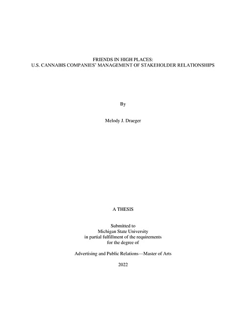 Friends in high places : U.S. cannabis companies' management of stakeholder relationships