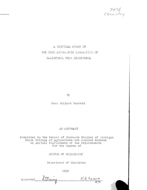 A critical study of the chromatographic separation of calciferol from ergosterol