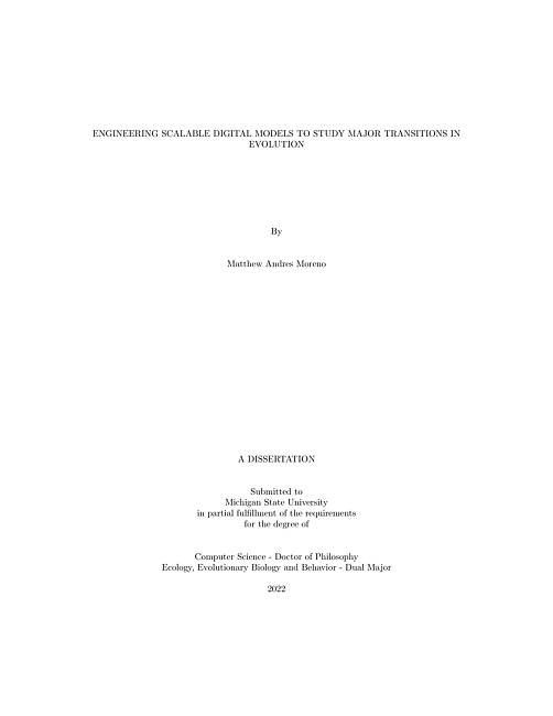 Evolutionary transitions occur when previously-independent replicating entities unite to form more complex individuals. Such major transitions in individuality have profoundly shaped complexity, novelty, and adaptation over the course of natural history. Regard for their causes and consequences drives many fundamental questions in biology. Likewise, evolutionary transitions have been highlighted as a hallmark of true open-ended evolution in artificial life. As such, experiments with digital multicellularity promise to help realize computational systems with properties that more closely resemble those of biological systems, ultimately providing insights about the origins of complex life in the natural world and contributing to bio-inspired distributed algorithm design.Major challenges exist, however, in applying high-performance computing hardware to realize the dynamic, large-scale digital artificial life simulations required for such work. This dissertation presents two new tools designed to facilitate digital multicellularity experiments at scale: the Conduit library for best-effort communication and the hstrat ("hereditary stratigraphy") library, which debuts novel decentralized algorithms to estimate phylogenetic distance between evolving agents.Most current parallel and distributed high-performance computing work emphasizes logical determinism: extra effort is expended to guarantee reliable communication and, when necessary, computation halts in order to await expected messages. Determinism does enable hardware-independent algorithmic results and perfect reproducibility, however adopting a best-effort communication model can substantially reduce synchronization overhead and allow dynamic (albeit, potentially lossy) scaling of communication load to fully utilize available resources. We present a set of experiments to empirically characterize the best-effort communication model implemented by the Conduit library on commercially available high-performance computing hardware. We find that best-effort communication through Conduit enables significantly better computational performance under high thread and process counts and can help achieve significantly better solution quality within a fixed time constraint.In a similar vein, existing digital evolution work that incorporates phylogenetic analysis does so through a perfect tracking model where each birth event is recorded in a centralized data structure. This approach, however, does not easily scale to distributed computing environments where agents may migrate between a dynamic set of disjoint processing elements. Additionally, this perfect tracking approach is not robust to data loss or corruption. To provide for phylogenetic analyses in these environments, we propose an approach to infer phylogenies via heritable genetic annotations. We introduce hereditary stratigraphy, an algorithm that enables efficient, fault-tolerant phylogenetic reconstruction with tunable trade-offs between annotation memory footprint and reconstruction accuracy. For example, this approach can estimate the most recent common ancestor (MRCA) generation of two genomes within 10% relative error with 95% confidence up to a depth of a trillion generations with genome annotations smaller than a kilobyte. We simulate inference over known lineages, recovering up to 85% of the information contained in the original tree using only a 64-bit annotation.We harness these tools in DISHTINY, a distributed digital evolution system designed to study digital organisms as they undergo major evolutionary transitions in individuality. This system allows digital cells to form and replicate kin groups by selectively adjoining or expelling daughter cells. The capability to recognize kin-group membership enables preferential communication and cooperation between cells. We report group-level traits characteristic of fraternal transitions in the natural world. These include reproductive division of labor, resource sharing within kin groups, resource investment in offspring groups, asymmetrical behaviors mediated by messaging, morphological patterning, and adaptive apoptosis. In one detailed case study, we track the co-evolution of novelty, complexity, and adaptation over the evolutionary history of an experiment. We characterize ten qualitatively distinct multicellular morphologies, several of which exhibit asymmetrical growth and distinct life stages. Our case study suggests a loose, sometimes divergent, relationship can exist among novelty, complexity, and adaptation.The constructive potential inherent in major evolutionary transitions holds great promise for progress toward replicating the capability and robustness of natural organisms. Coupled with shrewd software engineering and innovative model design informed by evolutionary theory, contemporary hardware systems could plausibly already suffice to realize paradigm-shifting advances in open-ended evolution and, ultimately, scientific understanding of major transitions themselves. This work establishes important new tools and methodologies to support continuing progress in this direction.