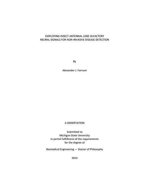 Employing insect antennal lobe olfactory neural signals for non-invasive disease detection