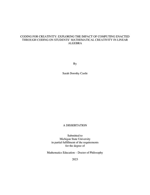 Coding for Creativity : Exploring The Impact of Computing Enacted Through Coding on Students’ Mathematical Creativity in Linear Algebra