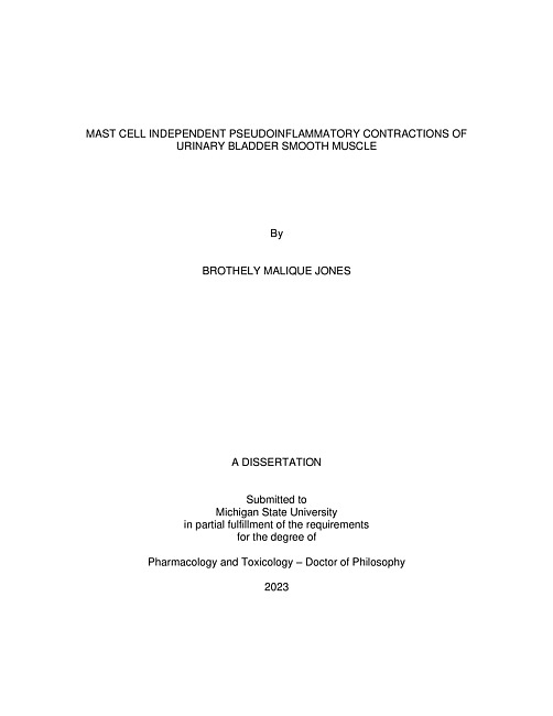 Lower urinary tract symptoms (LUTS) are a family of bladder symptoms that are a major negative driver of the quality of life of men and women who suffer from them. The pathophysiology is largely unknown; however, mechanisms are proposed to originate from neurogenic and myogenic changes. The neurogenic and myogenic origins of urinary bladder dysfunction are often characterized by lower urinary tract symptoms associated with inflammation, specifically resulting from mast cell degranulation, that are proposed to alter sensory nerves and urothelial cells within the urinary bladder. Interestingly, these same inflammatory mediators released from mast cells cause both short-and long-lasting contractions of urinary bladder smooth muscle (UBSM). These contractions could be viewed as initial disruptors of normal bladder function and can lead to dysregulation of bladder smooth muscle contractility. Thus, this dissertation seeks to address the following hypothesis: histamine released after mast cell activation directly increases urinary bladder smooth muscle contractility independent of nerves. We discovered that histamine-mediated contractions rapidly desensitize, whereas the mast cell activator compound 48/80 caused both a long-lasting increase in the amplitude and frequency of spontaneous phasic contractions as well as a transient increase in baseline tension in UBSM strips. Compound 48/80 also significantly augmented nerve-evoked contractions in UBSM strips, whereas histamine did not alter these contractions. Surprisingly, none of these effects were dependent on mast cells. Mast cell-deficient mice responded identically to compound 48/80, as compared to the mast cell-sufficient controls. Instead, the effects of compound 48/80 were dependent upon the release of prostaglandins from the urothelium. Together, these findings suggest that mast cells alone are not responsible for driving myogenic changes to urinary bladder contractility. Rather, the urothelium itself responds to pseudoinflammatory insults by releasing prostaglandins that alter UBSM responses to normal neuronal input. This mast cell-independent mechanism may be useful for identifying urothelium-specific targets for the treatment of LUTS.