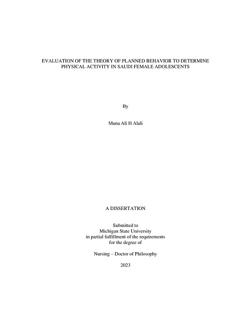 EVALUATION OF THE THEORY OF PLANNED BEHAVIOR TO DETERMINE PHYSICAL ACTIVITY IN SAUDI FEMALE ADOLESCENTS