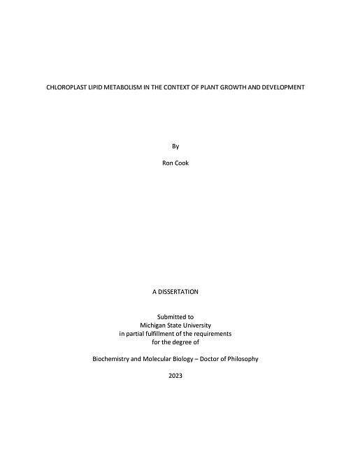 Chloroplast Lipid Metabolism in the Context of Plant Growth and Development