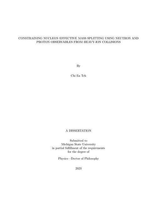 This dissertation focuses on the study of the nuclear equation of state, with an emphasis on the extraction of effective mass splitting between neutron and proton. A series of experiments was proposed and approved to use the neutron-to-proton (n/p) ratios from heavy-ion collisions as a probe to constrain the nuclear equation of state. The latest experiments were carried out at the National Superconducting Cyclotron Laboratory (NSCL) using three detection systems: the Microball, for extracting impact parameter information, the HiRA10 silicon array, for detecting light charged particles from hydrogen to helium isotopes, and the vLANA neutron wall, for measuring neutrons.Each of the two calcium isotope beams, 40Ca and 48Ca, were delivered at two different energies, 56 MeV/u and 140 MeV/u, and targeted onto stationary targets. These targets were enriched with either nickel isotopes, 58Ni and 68Ni, or tin isotopes, 112Sn and 124Sn, to produce a range of isospin asymmetries, (N −Z)/A, with values ranging from 0.02 to 0.14. A total of 16 beam-target configurations were explored in the experiment, but this dissertation primarily analyzes beam-target pairs with the extreme asymmetry values, specifically, 40Ca + 58Ni, 48Ca + 64Ni, 40Ca + 112Sn, and 48Ca + 124Sn, at both beam energies.Key findings include the successful reconstruction of light charged particle spectra with HiRA10 and the revelation of the isoscaling property across the entire measured range. The isoscaling of charged particles enables the construction of pseudo-neutron and corresponding coalescence-invariant (CI) neutron spectra. Due to large systematic errors, the CI n/p ratios from one single reaction may not be reliable. These limitations were greatly mitigated by constructing the double ratio of CI n/p ratios from the most and the least neutron-rich systems. The double ratio was then analyzed through a Bayesian framework informed by the Improved Quantum Molecular Dynamics (ImQMD) model, showing sensitivity to the nucleon effective mass splitting.The second part of this work dedicated significant effort towards the calibration and data analysis of vLANA, a neutron wall array equipped with a veto wall to discriminate against charged particles. The in-depth calibration resulted in improvements in accuracy, precision, and effective handling of large variety of data obtained over a period of two months when the experiments were performed. The intrinsic efficiency of neutron detection was evaluated through a sophisticated simulation using a newly developed neuSIM4 code. The study culminated with the presentation of neutron spectra for the Ca+Ni systems at incident energy of 140 MeV/u, confirming the isoscaling property of neutrons. Furthermore, the substitution of pseudo-neutrons with actual reconstructed neutrons in the CI n/p double ratio suggested Δm∗np/δ = −0.10 ± 0.09, aligning with the findings from the light charged particle analysis and previous works.In summary, the methodology developed in this dissertation paves a way for future investigations of effective mass splitting, contributing to our understanding of the nuclear equation of state. It also underscores the need for ongoing collaboration with theorists and calls for further exploration using other theoretical models.