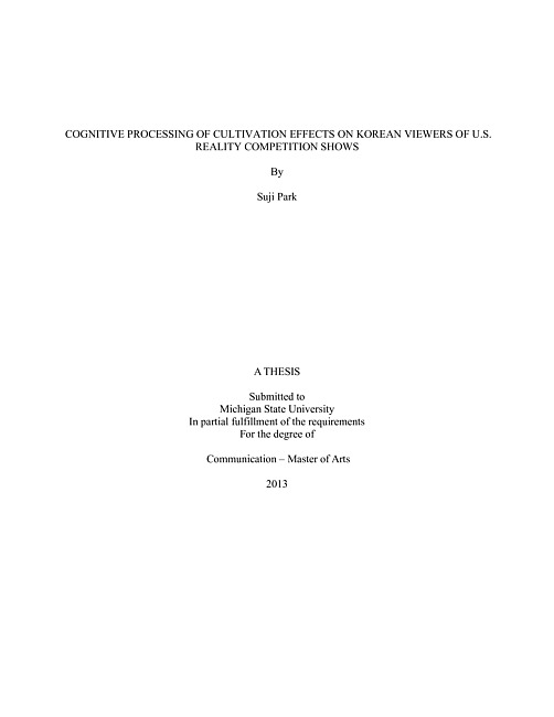 Cognitive processing of cultivation effects on Korean viewers of U.S. reality competition shows