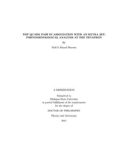 The first measurement of the cross section of the top quark pair in association with an extra hard jet (ttbar+jet) has been performed with 4.1 fb-1 of data collected at CDF. The measurement is an important test of perturbative QCD, as NLO effects play an important role in the calculation of the theoretical cross section. In addition, it is also important for future measurements at the LHC, for which almost half of the top quark events will be produced with extra jets. Therefore, this process will be a substantial background for many new physics signals. The measurement is performed using SecVtx tagged events in the lepton plus jet channel. A data-driven approach is used to predict the background content, and a 2D likelihood is formed to simultaneously measure the ttbar+jet and ttbar without extra jet cross sections. The measured result is σ ttbar+jet = 1.6±0.2(stat)±0.5(syst)pb which is in agreement with the recent NLO SM prediction 1.791(1)+0.16-0.31pb. In order to elucidate the kinematic profile of the extra jet, an isolation algorithm has been developed. The algorithm has extracted correctly the extra jet out from the final state jets ∼ 60 % of the time. This allowed for correcting the measured distributions of the extra jet for purity/efficiency in order to compare them with the MC distributions. The differences in the kinematics of the extra jet using different SecVtx requirements and different MC models (PYTHIA and MCFM) have been studied, and found to be in agreement with the SM prediction.