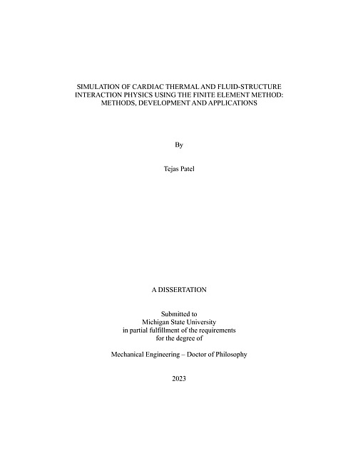 SIMULATION OF CARDIAC THERMAL AND FLUID-STRUCTURE INTERACTION PHYSICS USING THE FINITE ELEMENT METHOD : METHODS, DEVELOPMENT AND APPLICATIONS