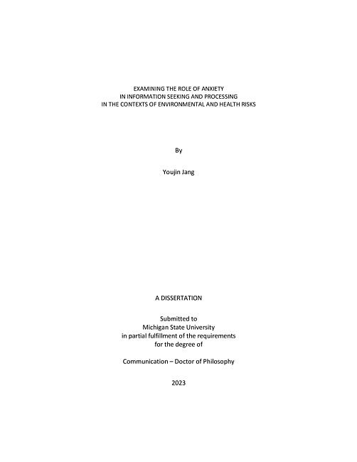 EXAMINING THE ROLE OF ANXIETY IN INFORMATION SEEKING AND PROCESSING IN THE CONTEXTS OF ENVIRONMENTAL AND HEALTH RISKS