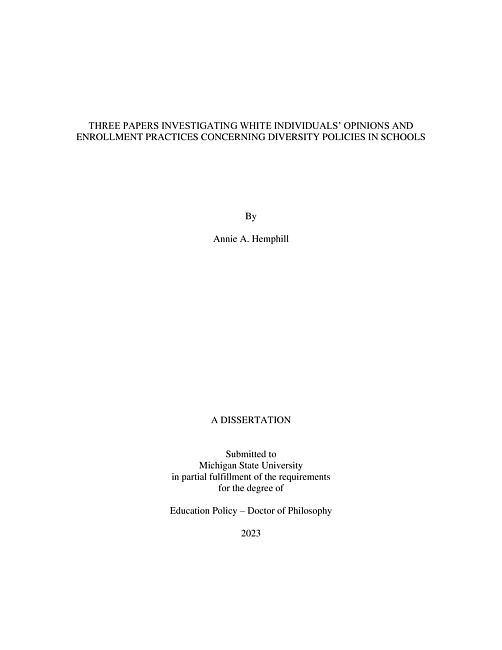 THREE PAPERS INVESTIGATING WHITE INDIVIDUALS’ OPINIONS AND ENROLLMENT PRACTICES CONCERNING DIVERSITY POLICIES IN SCHOOLS