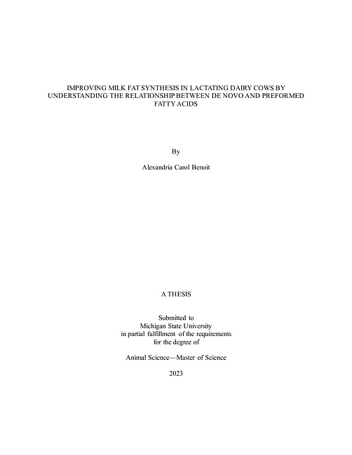 IMPROVING MILK FAT SYNTHESIS IN LACTATING DAIRY COWS BY UNDERSTANDING THE RELATIONSHIP BETWEEN DE NOVO AND PREFORMED FATTY ACIDS