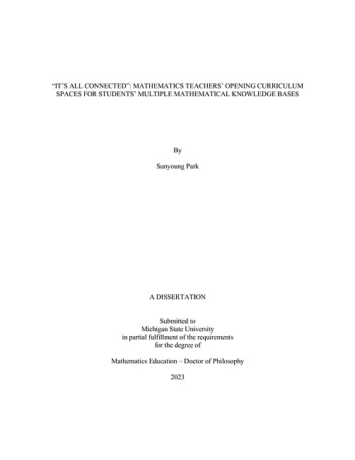 “IT’S ALL CONNECTED” : MATHEMATICS TEACHERS’ OPENING CURRICULUM SPACES FOR STUDENTS’ MULTIPLE MATHEMATICAL KNOWLEDGE BASES